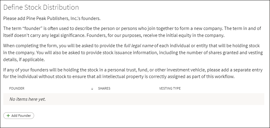 If you checked that these are Founder Grants in the previous step, you will see a button to Add Founder.